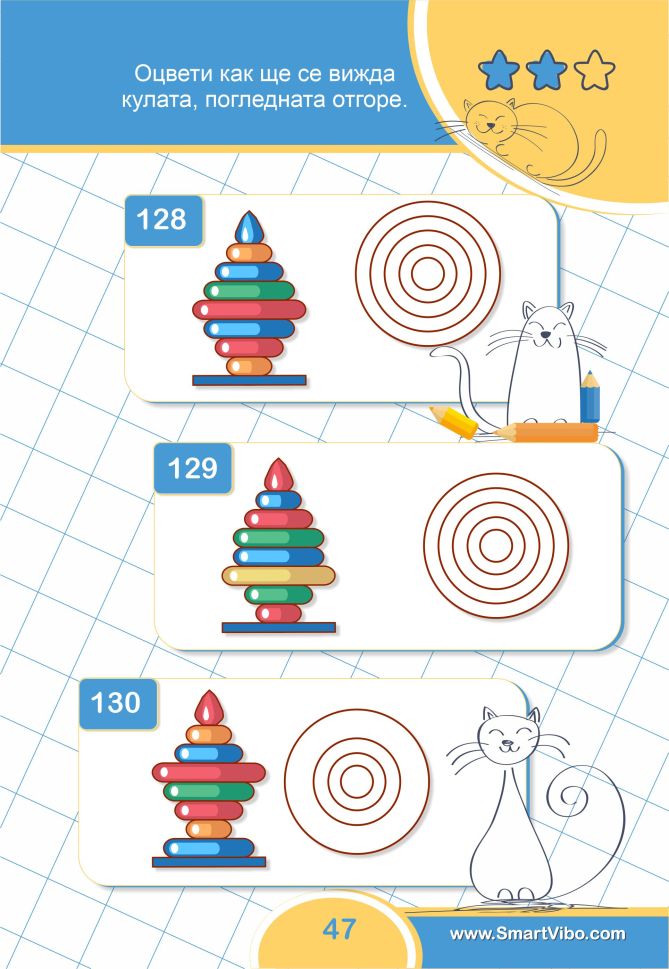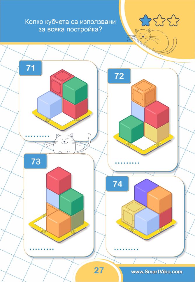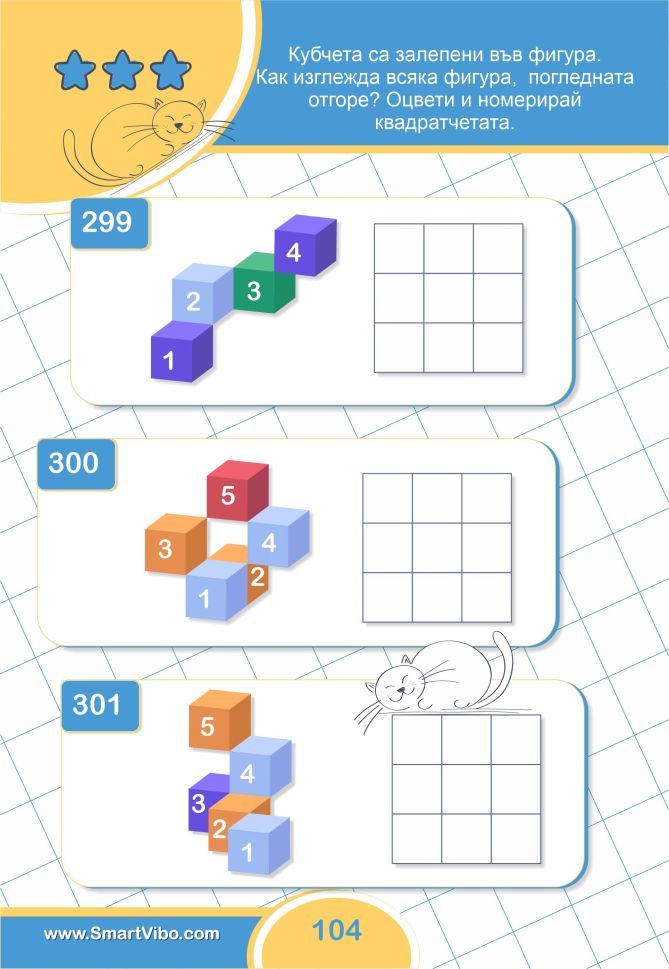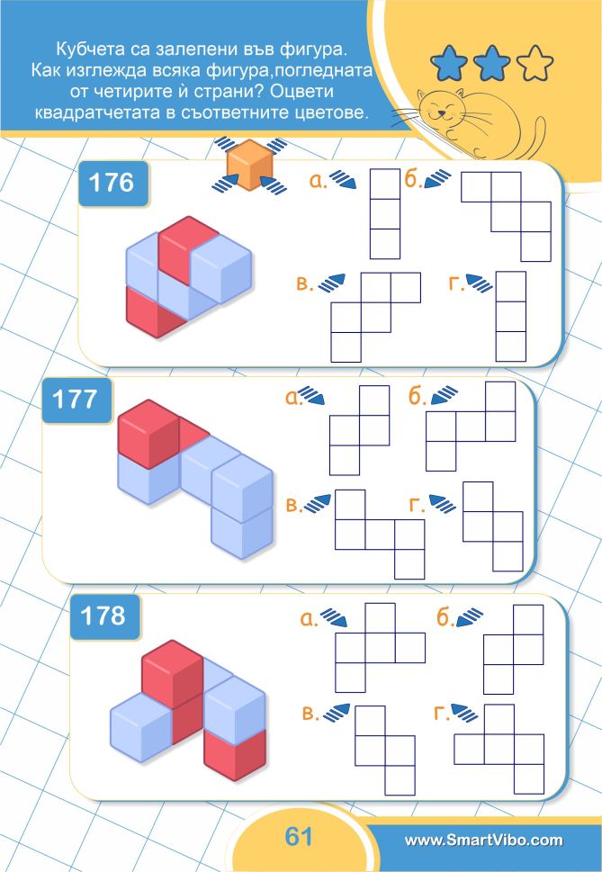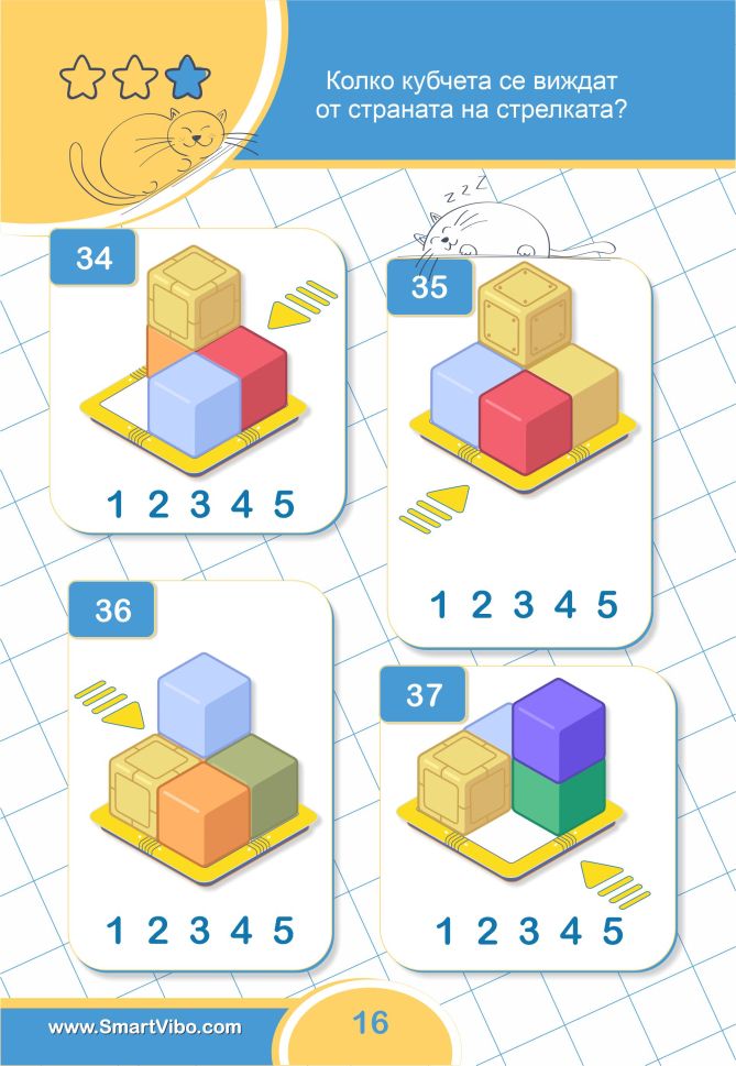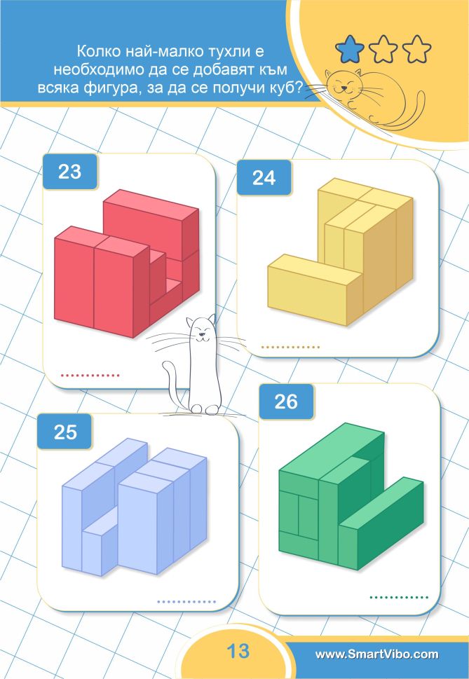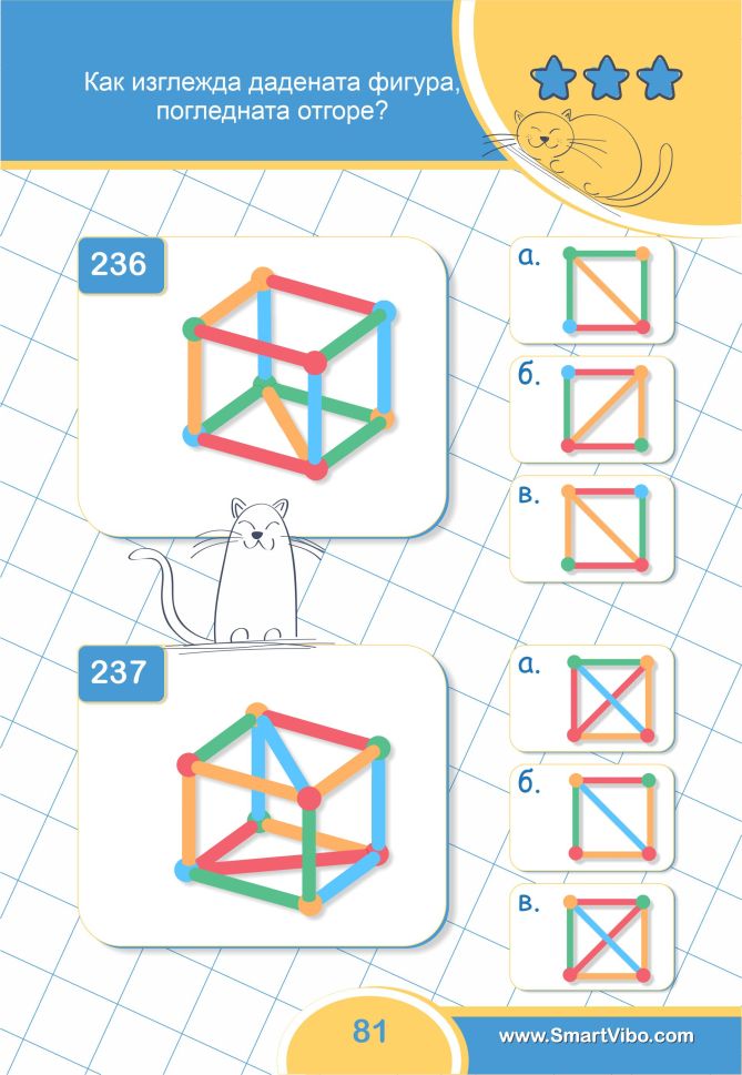 3D ЗАДАЧИ ще помогне на детето да сформира пространствено мислене, да тренира зрително възприятие и внимание към детайлите, ще се подготви за бъдещи изпити и състезания.
