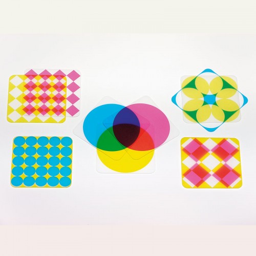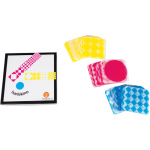 Съдържание / материали / размери: 60 прозрачни пластмасови карти със следните характеристики: цвят (червено, жълто, синьо), форма (кръг, квадрат), количество (1, 4, 9, 16 и 25), графичен дизайн (позитив и негатив). Опаковка – атрактивна картонена кутия.