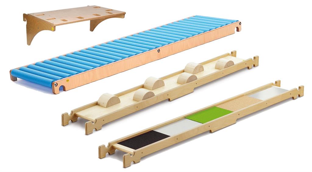 Съдържание: 1 бр. модул за закачане на оборудване (ER44488), 1 бр. ролкова пързалка 205 см (ER44464), 1 бр. тактилна балансираща пътека (ER46381), 1 бр. тактилна балансираща пътека (ER46383)