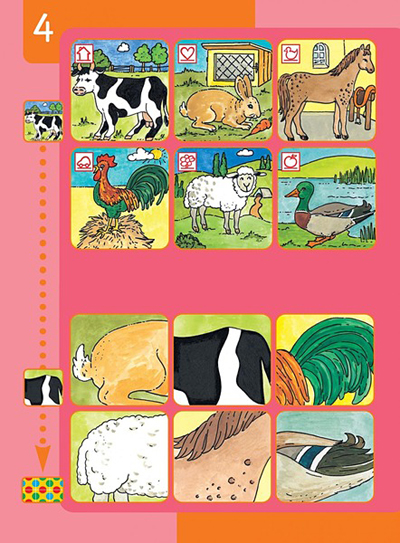 Къде живеят прасето, котката или зайчето? С книжката децата правят едно вълнуващо пътешествие до село. Упражненията не включват текстове и затова могат да се правят от всички деца без значение какъв език говорят. Те развиват способността за концентриране на вниманието и възприятията, както и способността да се мисли и комбинира.