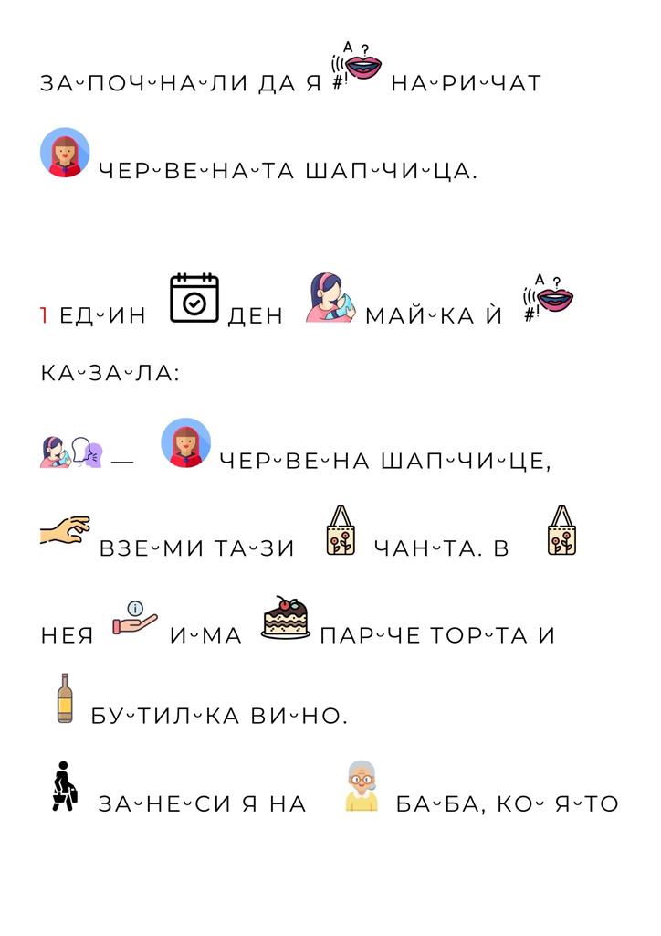Червената шапчица в пиктограми – специална адаптация на любимата класическа приказка, която съчетава текст и пиктограми за вълнуващо и достъпно четене.