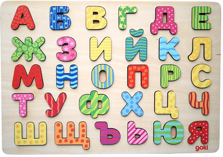 Дървен пъзел с изрязани букви за вгнездяване. Размери: 30 x 21 x 1 см