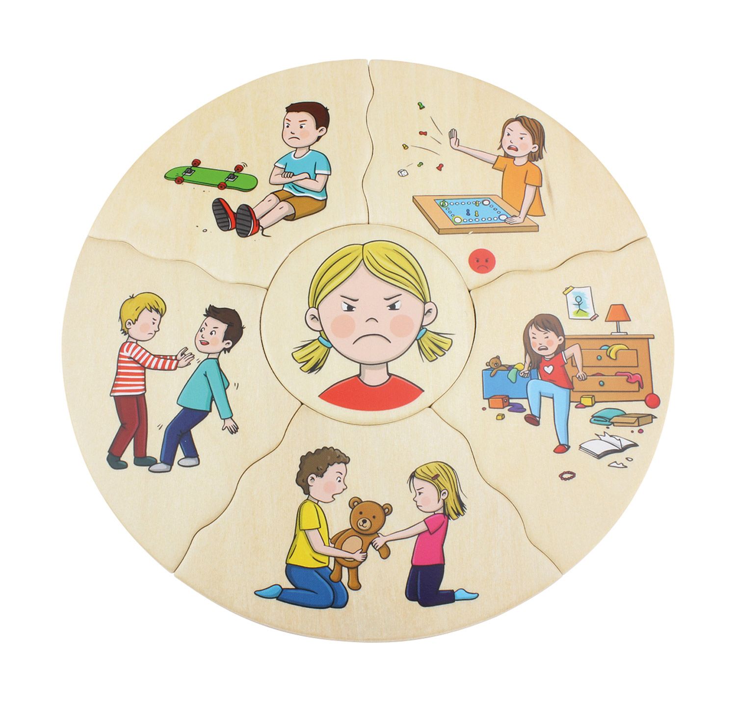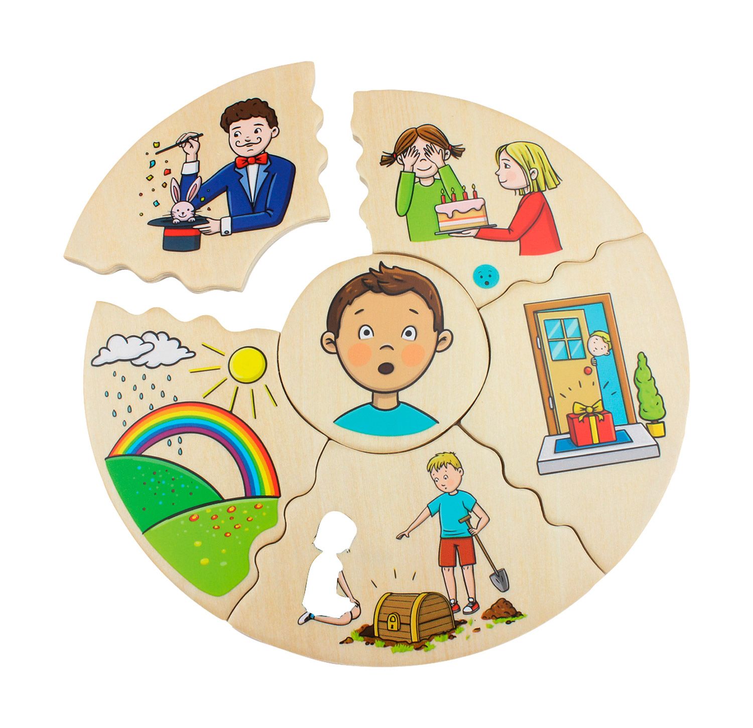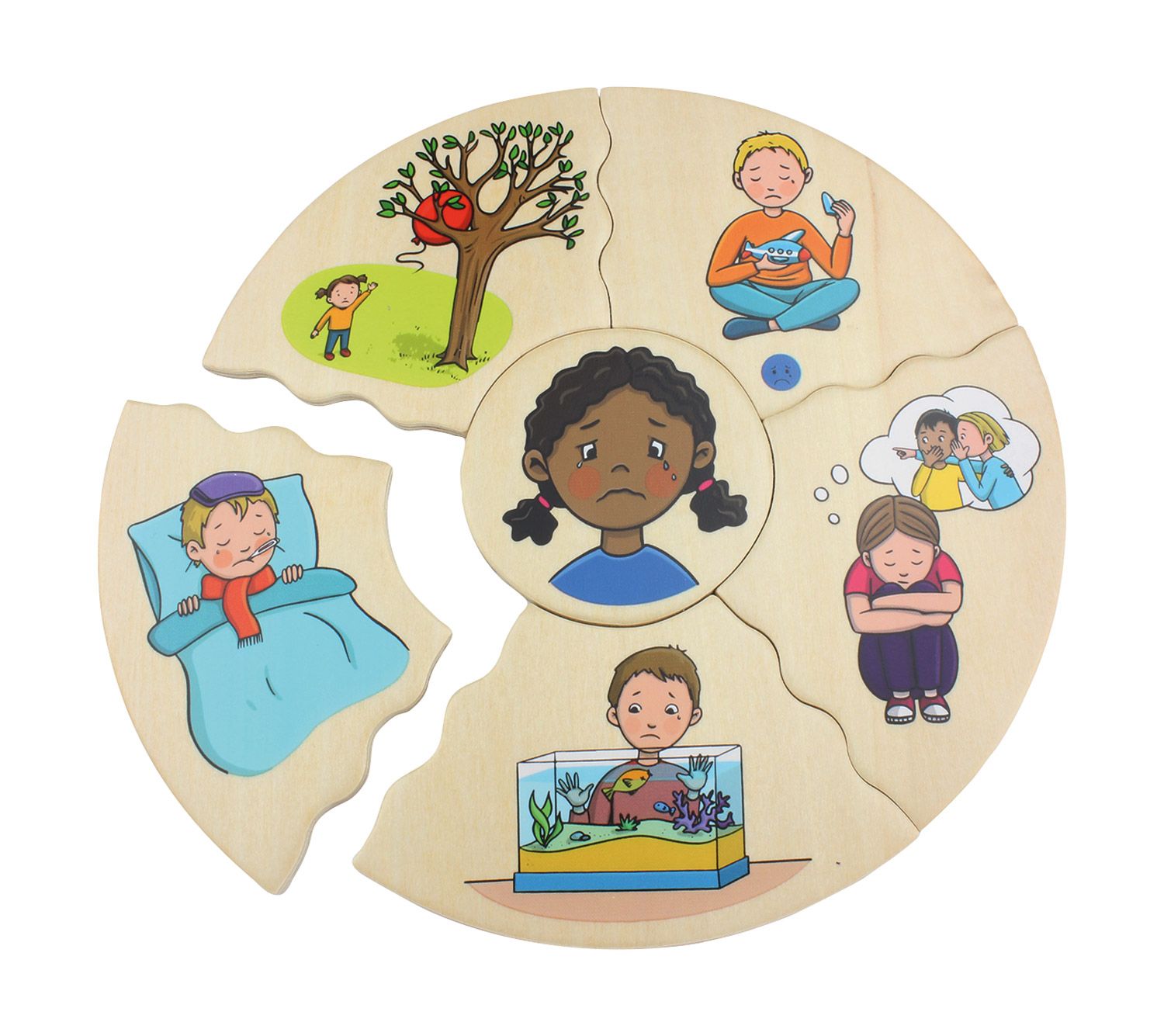 При децата изпитването на емоции често е в пъти по-интензивно в сравнение с възрастните. Затова е много важно те да се научат да ги разпознават, осъзнават, изразяват и да се справят с тях по здравословен начин. Използвайте изобразените върху пъзела мотиви като повод за провеждане на разговори с детето за това какво изпитва, как се чувства!
