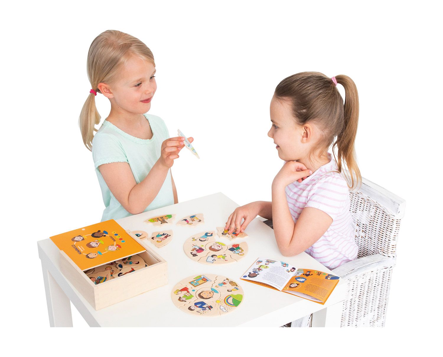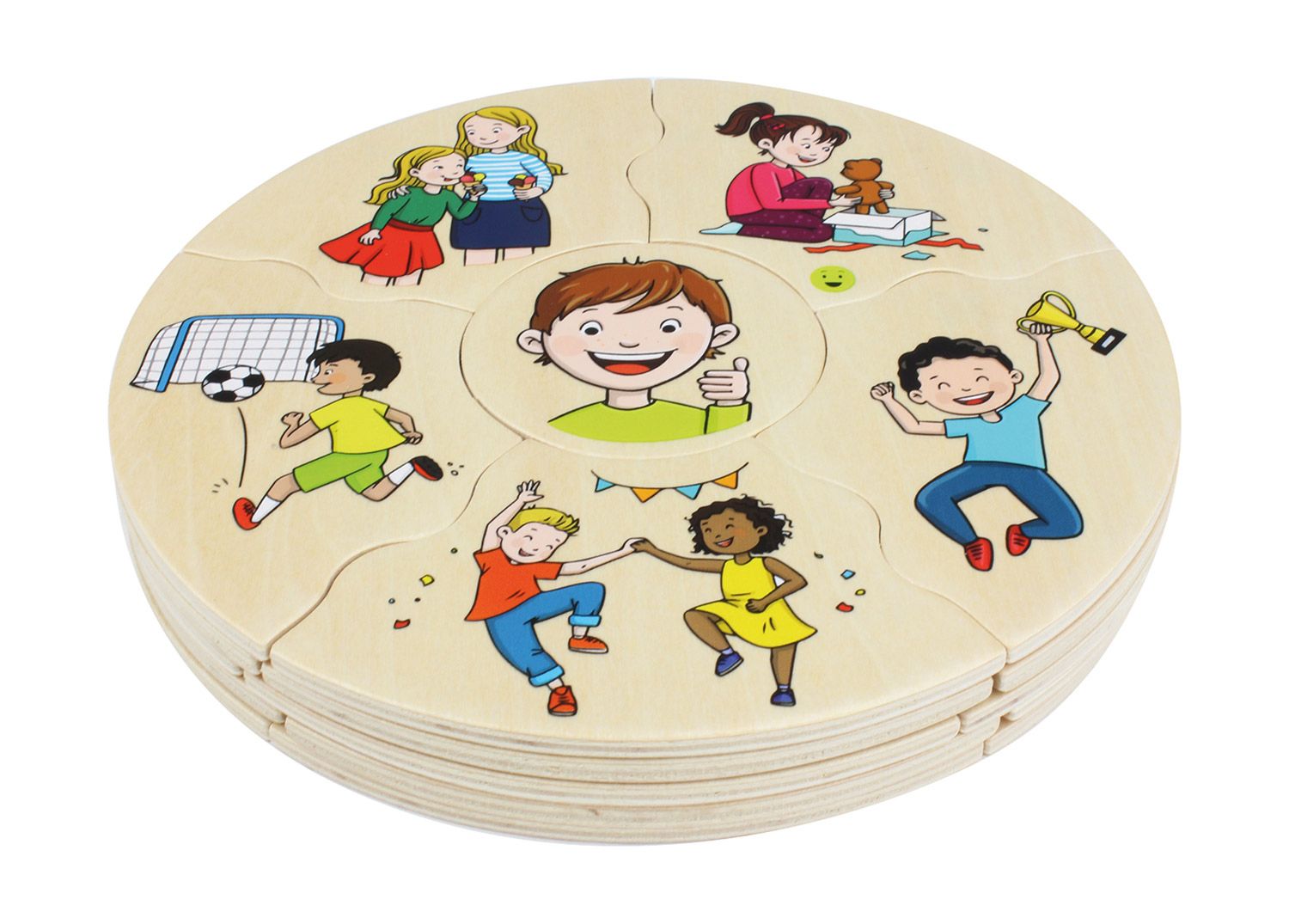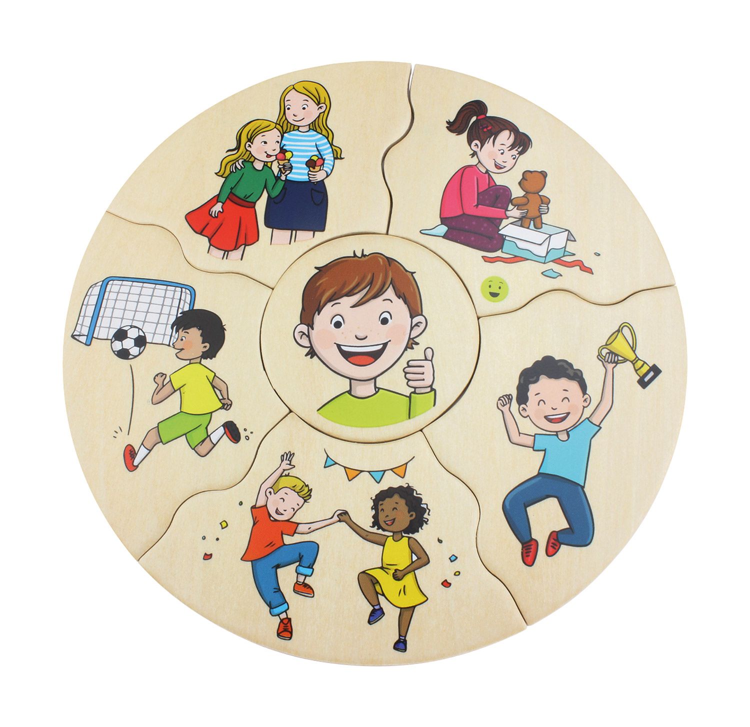 При децата изпитването на емоции често е в пъти по-интензивно в сравнение с възрастните. Затова е много важно те да се научат да ги разпознават, осъзнават, изразяват и да се справят с тях по здравословен начин. Използвайте изобразените върху пъзела мотиви като повод за провеждане на разговори с детето за това какво изпитва, как се чувства!