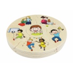 Детският пъзел е изработен от висококачествени материали, дизайнерски е решен с артистични картинки в атрактивна цветова гама и се доставя в компактна дървена кутия за лесно съхранение.