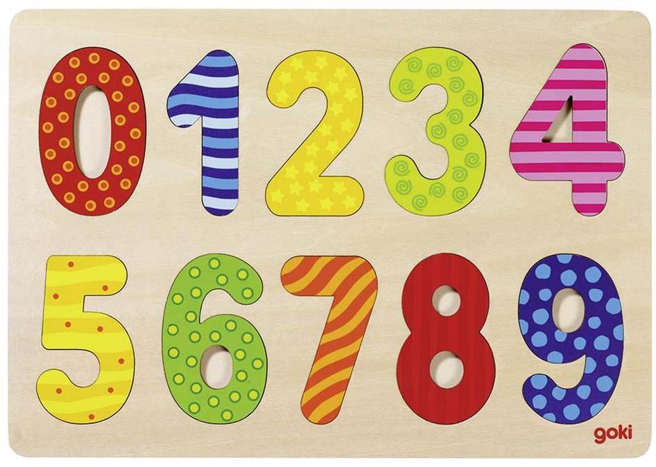 Дървен пъзел с големи изрязани цифри за вгнездяване.