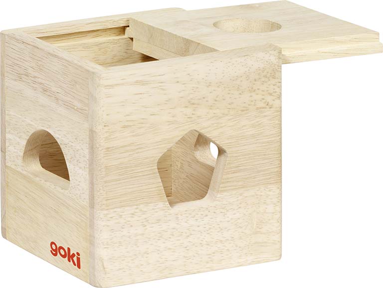 Кутия за сортиране с 6 цветни триизмерни фигури за вгнездяване.