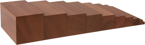 Съдържание / материал / размери: Стълбичката се състои от 10 дървени блокчета с дължина 20 см. Височината и ширината градират със стъпка 1 см от 1 до 10 см