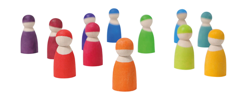 12-те дървени фигурки символизират 12-те месеца през годината. Цветовото кодиране на фигурките съответства на температурните специфики на месеците (нюанси от студени до горещи тонове). Те могат да бъдат използвани като календар или в свободна игра (за диференциране на цветове, за броене, ролеви игри и т.н.). Могат да се съчетаят с Табла за Цветен календар (553415), в която децата трябва да намерят мястото на всяка фигурка.