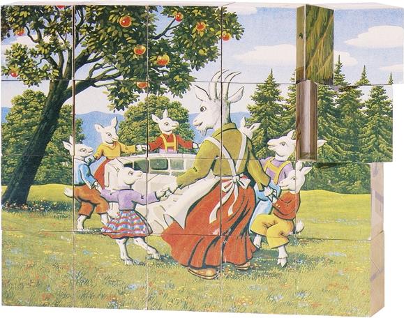 Пъзел кубчета от двадесет части, в дървена кутия. Размери: 17,5х14х3,5 см