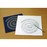 поставете лист хартия върху плочка по избор и оцветете с пастел очертанията на формата отдолу. Ако пък имате два комплекта плочки, може да опитате с игрите, трениращи паметта.