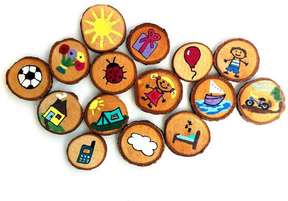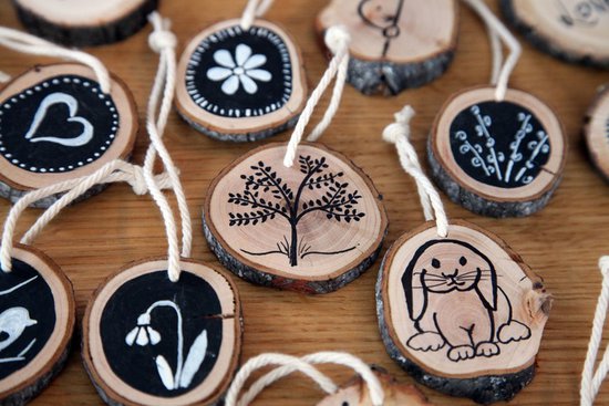 Дървени шайби за приложни дейности и декорация. Поради естествения процес на изсушаване на дървесината и възможно напукване на някои шайби и/или падане на дървесната кора.