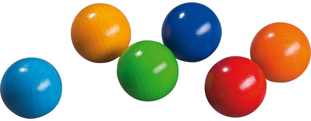 Комплект от 6 бр. дървени топки в 6 красиви цвята: червено, оранжево, жълто, тъмно синьо, светло синьо, светло зелено. Размери: диам 4,6 см