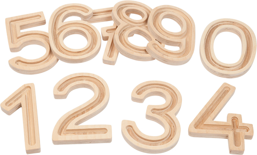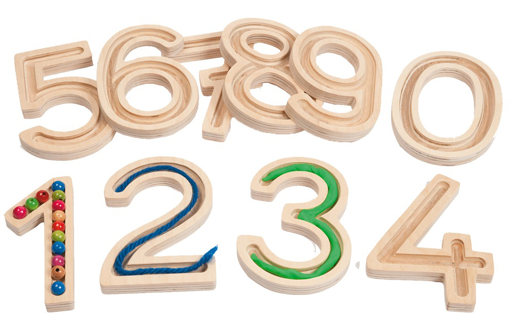 Децата могат да проследяват формите на цифрите с пръст или да ги напълнят с различни предмети (мъниста, топчета, копчета, пластелин, пясък), за да направят играта по-интересна.