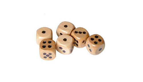 Комплект от 6 бр. дървени зарчета с точки.