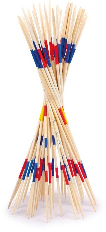 Класическа игра микадо, но в по-голям размер. Подходяща за игри на открито. Съдържание: 31 пръчки Материал: дърво Дължина на пръчката: 46 см