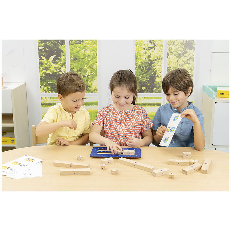 Деблоки е иновативен обучителен комплект, който насърчава логическото мислене и разбиране на математическите взаимовръзки чрез активно манипулиране на дървени елементи. Детето решава аритметични задачи, като физически подрежда числови блокчета и визуализира действието на събиране, изваждане, умножение и деление. Този подход подпомага прехода от конкретното към абстрактното мислене и развива увереност при работа с числа.