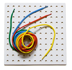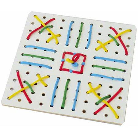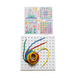 Перфорирана бяла дъска с размери 17,5х17,5 см и модели за бродиране. 4 цветни шнура. Доставя се в подаръчна кутия.