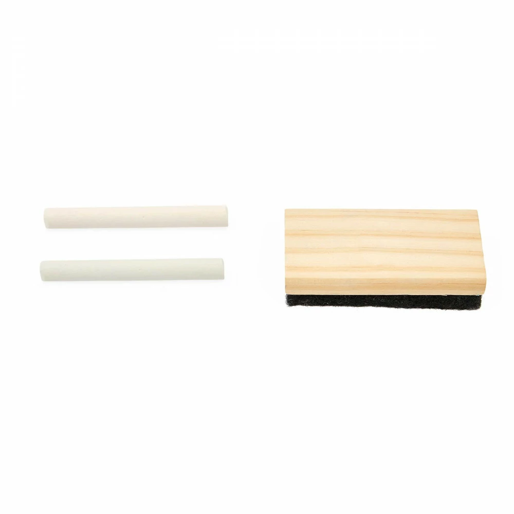 - Вградена черна дъска – децата могат да рисуват и творят с включените 2 броя тебешир и 1 четка.