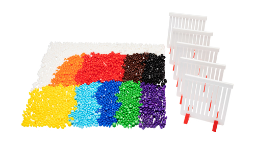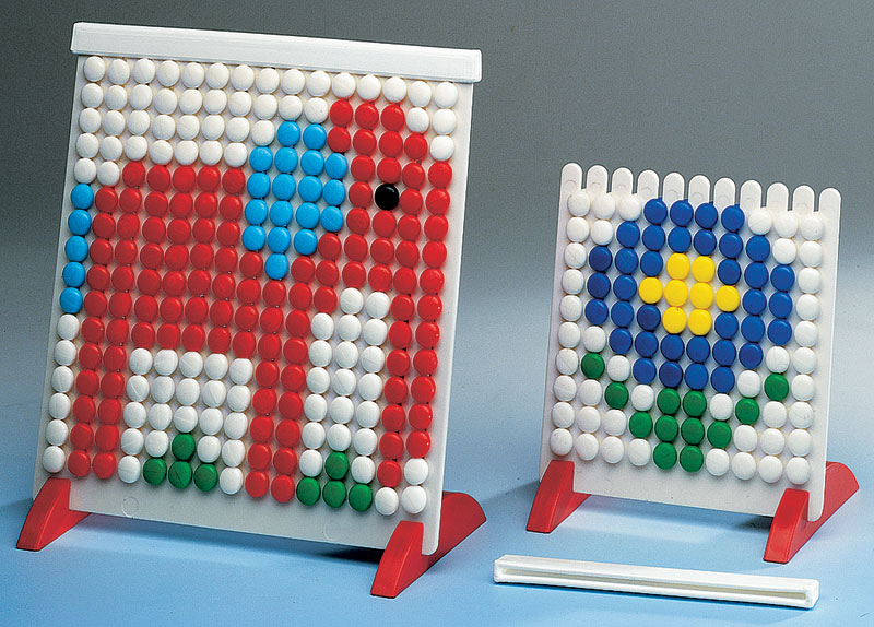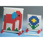 Мозайка Аксимо S – комплект за детска градина Съдържание: 1,2 кг ролки (приблизително 1450 броя), 5 пластмасови стойки с 10 улея, включително 5 x 2 крачета и 5 крайни ленти и книжка с шаблони.