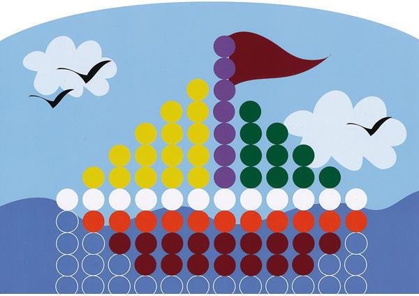 Детски вертикална мозайка, при която цветните елементи се нанизват в улеите. Комплектът включва пластмасова кутия за съхранение на елементите и една стойка за нанизване. 200 броя цветни перлички и 6 броя цветни карти за подреждане (пчела, къща, замък, охлюв, яхта и папагал). С малко въображение можете да създадете и свой собствени модели. Към играта можете да поръчате и допълнителни карти с модели (ED370162).