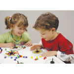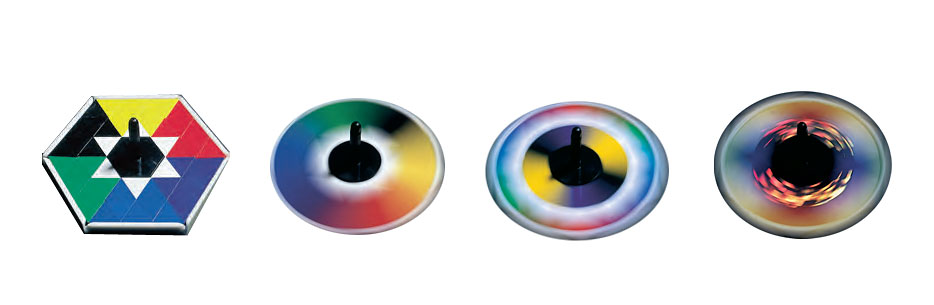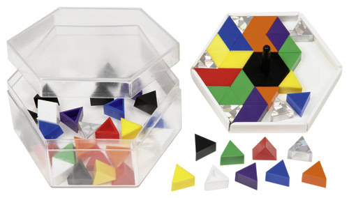 Детска мозайка – пумпал. Цветните триъгълни елементи трябва да се подредят в рамката. Когато завъртите пумпала, цветовете ще започнат да се преливат и да създават вълнуващи оптични ефекти.