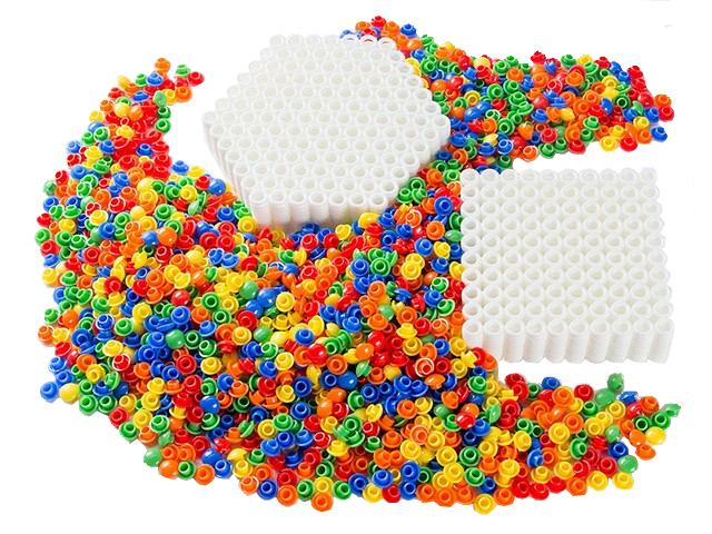 Съдържание / материали / размери: Мозайка от гъвкава пластмаса. Мозаичните елементи прилягат плътно и здраво към основата. 10 шестоъгълни (14,5х16,5 см) и 10 квадратни (12,5х12,5 см) основи. Полукръгли мозаични елементи – около 1560 бр. в 5 цвята и найлонова опаковка.