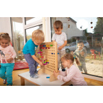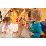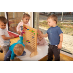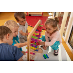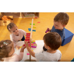 Настолна мозайка с голяма стойка и големи акрилни елементи в 7 приказни цвята. Играта позволява на децата да експериментират с цветовете, симетрията, да редят фигури или мотиви, да създават свои творчески комбинации. Цилиндричните елементи на мозайката са изключително приятни на допир. Те пропускат светлина през себе си и създават вълнуващи визуални ефекти. Може да се играе на естествена дневна светлина, а ако се използва допълнителна подсветка (например светещ панел или плот) в затъмнено помещение, ефектите са още по-впечатляващи. С мозайката могат да играя по няколко деца наведнъж от двете страни на стойката.
