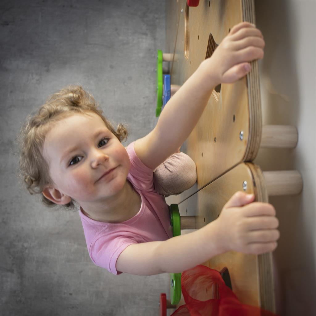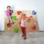 Всеки панел има вградени отвори за захващане и се предлага с 3 цветни хватки, които могат да бъдат позиционирани индивидуално, благодарение на равномерно разположените монтажни отвори. Това позволява адаптиране към уменията на детето и надграждане с времето. Модулният дизайн позволява последващо разширяване с допълнителни панели, когато пространството и нуждите го изискват.
