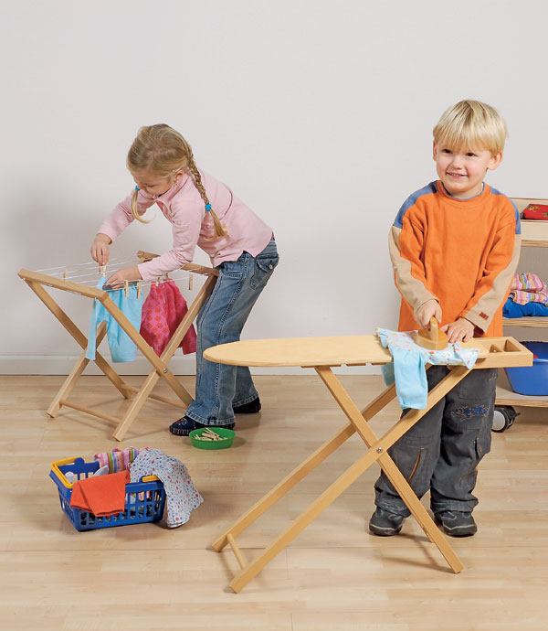 Съдържание / материали: Детски стоящ простор за пране, изработен от масивна дървесина. Сгъваем.