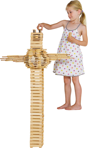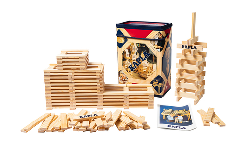 Около 200 дървени строителни блокчета от серията Kapla и брошура с модели.