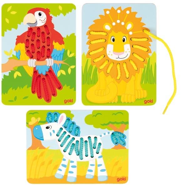 Комплект дъски за бродиране със закачлив дизайн във формата на зебра, папагал и лъв. Съдържание: 3 дъски, 6 цветни шнура Материал: дърво Размер на таблата: 12х16,5 см