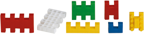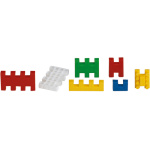Съдържание / материали / размери: 4,2х2,4х0,6 см; 1 кг пакет съдържа 450 строителни блокчета в различни цветове и форми, 20 колела, 10 брадви.