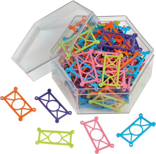 Пластичен конструктор. Елементите са изработени от цветна гъвкава пластмаса. Въпреки че са само с една форма, те предлагат безкрайни възможности за създаване на различни форми. По този начин се развива фантазията на децата.
