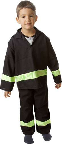 Детски костюм на пожарникар от две части – яке и панталон със светлоотразителни ленти. Съдържание / материал: яке и панталон, изработени от 100% полиестер, ръчно пране Размер: 116 см