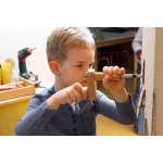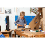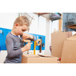 От стари кашони до самолети, коли, мебели и т.н. С този практичен комплект всяко дете може да стане строител. Винтовертът е лесен за използване. Дюбелът се поставя върху бургията и може директно да се завинтва в няколко слоя картон. Връзката е много стабилна, а дюбелът може да се развие след употреба и да се използва отново. Възможно е както пробиване, така и завинтване.
