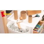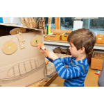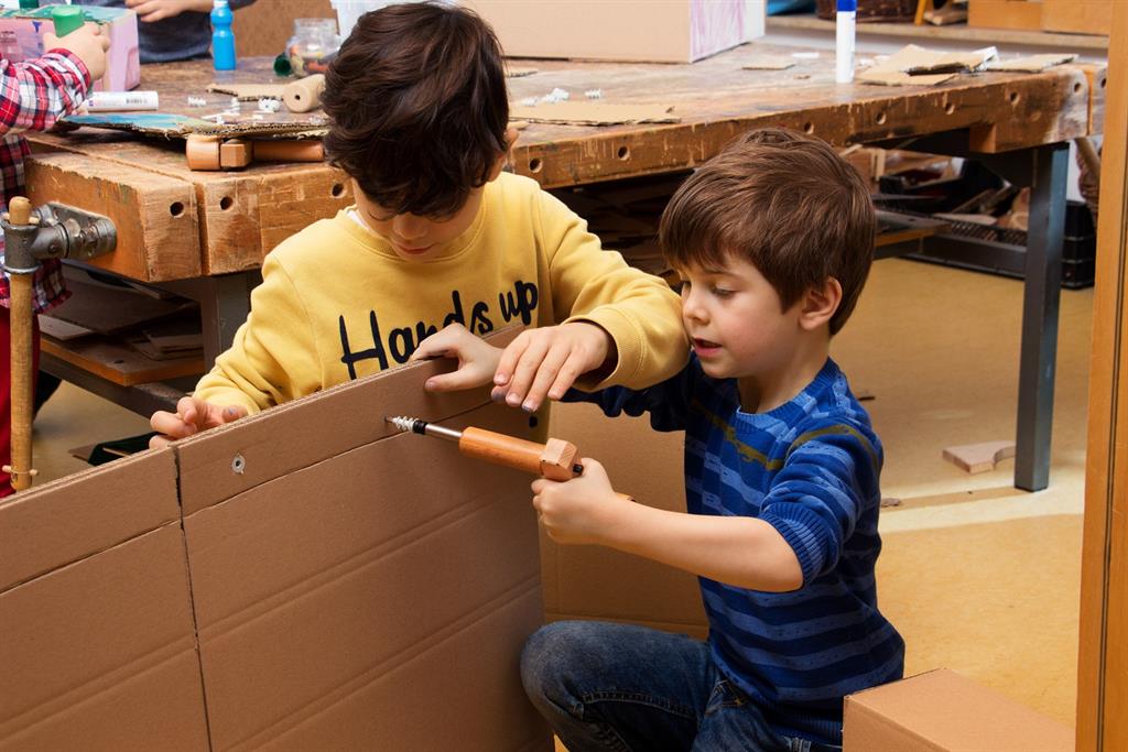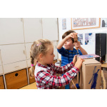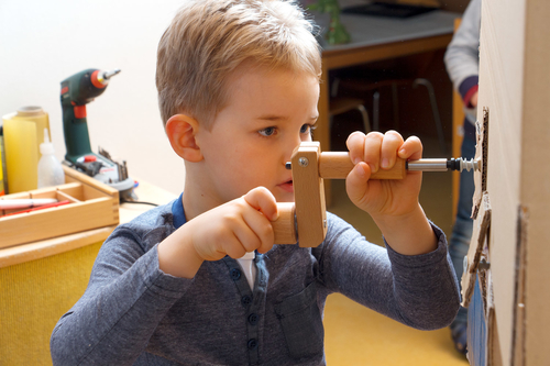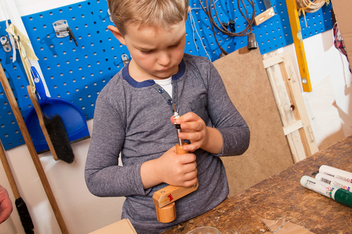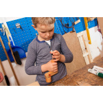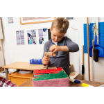 От стари кашони до самолети, коли, мебели и т.н. С този практичен комплект всяко дете може да стане строител. Винтовертът е лесен за използване. Дюбелът се поставя върху бургията и може директно да се завинтва в няколко слоя картон. Връзката е много стабилна, а дюбелът може да се развие след употреба и да се използва отново. Възможно е както пробиване, така и завинтване.