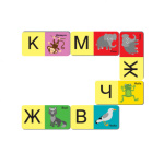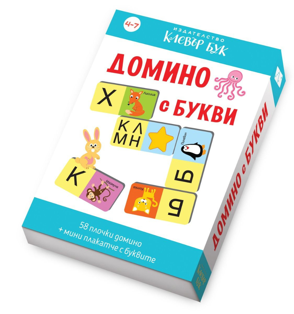 Играта съдържа 58 плочки домино, върху които има букви от българската азбука, животни, започващи с тези букви, както и допълнителни бонус плочки. Комплектът включва мини илюстриран плакат с българската азбука. Детето научава буквите, развива асоциативността и логиката си. Подходящи за игра и забавления с цялото семейство.