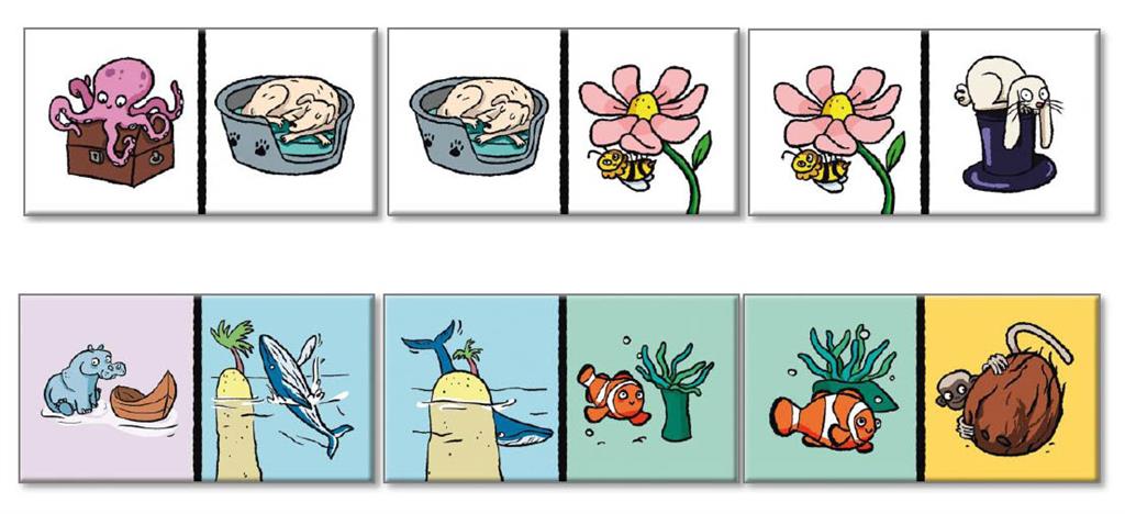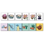 Мотиви върху картите: птица, пчела, куче, пиле, мишка, котка, заек, риба, октопод, гъсеница