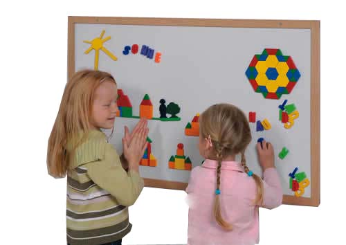 Двустранна магнитна дъска с дървена рамка. Едната страна е бяла, а другата – бежова.
