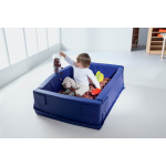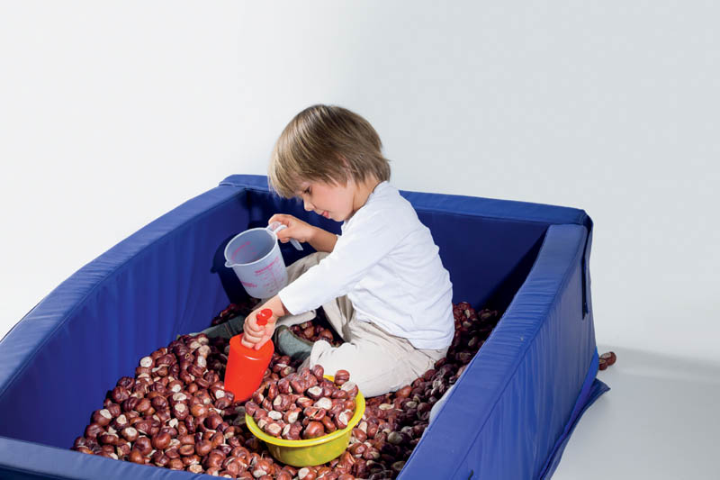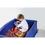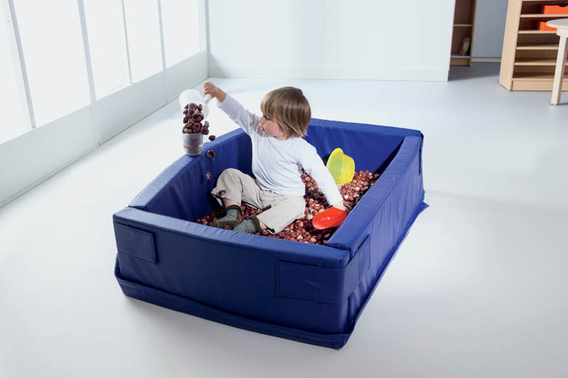 Екшън басейнът е проектиран специално за игри с материали, които лесно се разпиляват, но трудно се събират – пясък, вода, мъниста, пяна, зърно и други . Стените и подът се съединяват с лента велкро. Басейнът се сглобява и разглобява лесно, за да може бързо да съберете и почистите след забавлението на малчуганите. Изисква минимално място за съхранение.