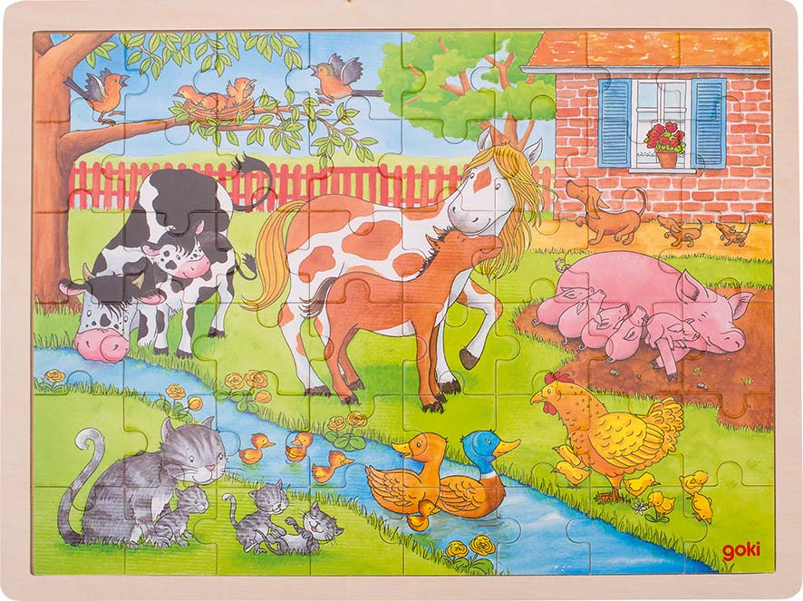 Пъзел в дървена рамка на тема „Животът във фермата“. Съдържание: 48 елемента Материал: дърво Размери: 40х30х0,8 см