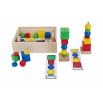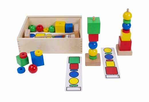 Игра за развитие на фината моторика, пренос на модели, диференциация и съотнасяне на цветове и форми, зрително-моторна координация.