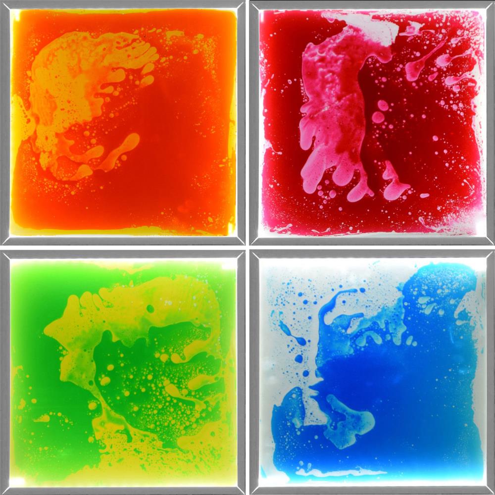 Комплект от 4 бр. маслени гел плочи с подсветка. Всяка плоча е пълна с течен гел. При натиск или стъпване върху нея гелът се движи и образува впечатляващи фигури. Материалът е здрав и издържа на скачане от деца, възрастни и дори на тежестта на инвалидна количка.