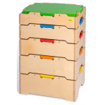 Независимо дали се използват по отделно или са подредени във вид на кула, цветните кутии са стабилни и няма да се преобърнат в случай, че детето върху тях се движи и накланя.
