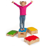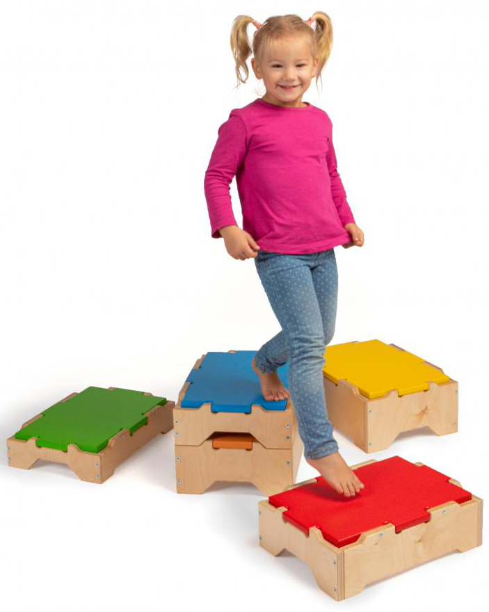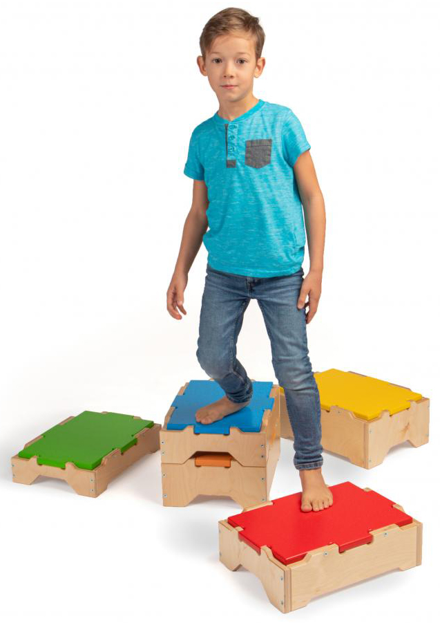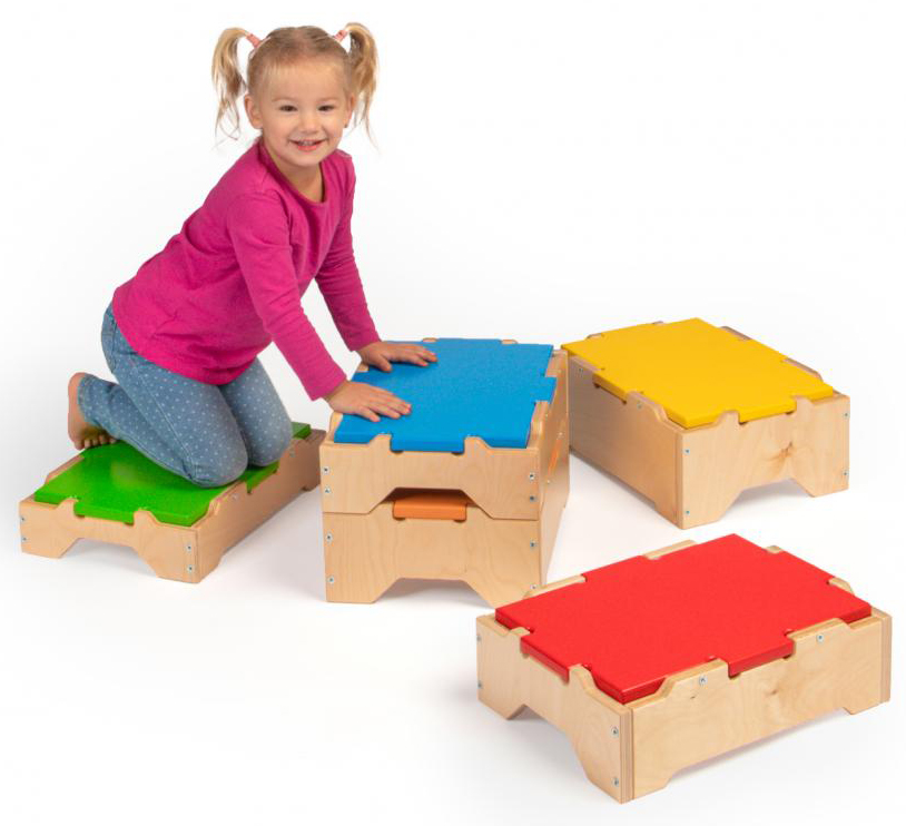 Децата, които се движат повече, имат по-добър баланс, по-здрави са и растат по-щастливи, концентрират се по-ефективно, притежават по-голяма увереност в себе си и движенията им са по-координирани. Цветните гимнастически кутии целят именно да подпомогнат децата в овладяването на добър баланс и координация и в развиването на различни когнитивни умения. Кутиите са изработени от здрав брезов шперплат и са проектирани със заоблени ръбове за максимална безопасност при употреба от деца. Ярките и наситени цветове служат да привлекат детското внимание и да формират жизнерадостна атмосфера.