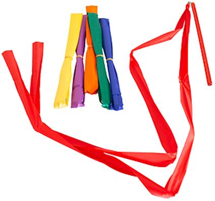 Комплект от 6 гимнастически ленти за деца. Дължината на лентите е съобразена с възможностите на децата Материал: ленти от 100% найлон, дръжки от пластмаса Размери: лента – 90 х 2,5 см дръжка – 23 см