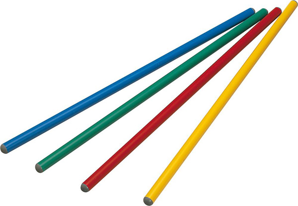 Комплект от 4 бр. гимнастически тояжки в 4 цвята. Изработени от здрава пластмаса, със заоблени краища. Размери: дължина 100 см, Ø 25 мм