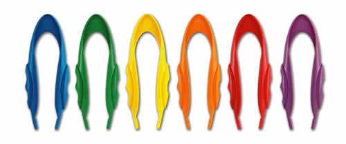 Големи пинсети в 6 различни цвята с вдлъбнатини за пръстите на ръцете, които осигуряват по-добър захват.
