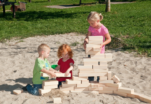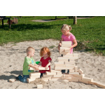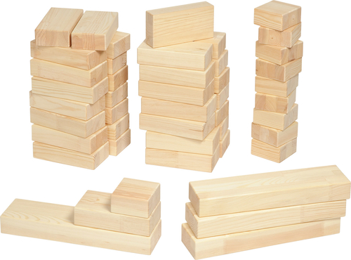 Съдържание/ материали / размери: 32 основни тухлички (20х10х5 см), 10 бр. ½ тухлички (10х10х5 см), 4 двойни тухлички (40х10х5 см). Изработени от масивна дървесина, със заоблени ръбове и гладка повърхност. Опаковка: картонена кутия.